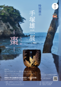 70周年事業を開催するにあたっては、これまで研究所に関わってこられた皆様の積年の思いを感じ取っている次第です。この思いを今後も着実に積み重ねていくため、6月21日に実施した『観月会2025講演会 手塚雄二×小泉晋弥クロストーク「日本美術院の系譜-五浦で岡倉天心を語る-」』に続き、本展を企画いたしました。展覧会では、日本画家・手塚雄二氏(1953-)の作品「棗」を主として、「香合」「スケッチ」を展示いたします。茶道具の意匠は手塚氏の絵画世界そのものであり、形態を変えた「日本画」と呼べるでしょう。スケッチは、天心遺跡の六角堂(研究所)、天心遺跡記念公園(旧日本美術院五浦研究所跡)で描かれました。五浦の地で生まれた画家の視点をご堪能いただき、日本美術院の系譜を感じていただければ幸いです。