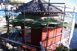 この六角堂のベンガラ塗替えは、東日本大震災で流出後、2012年に再建されて以来「初めて」の取り組みです。